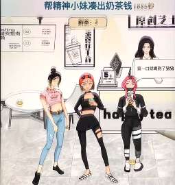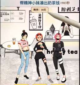 2、将桌上的奶茶移动到最右边的精神小妹手上,可掉落五毛。