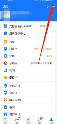 1、打开支付宝,选择上方的设置。
