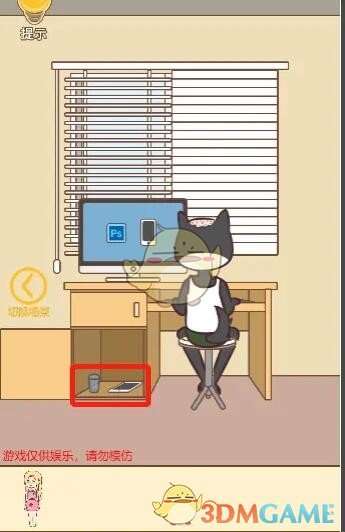 1、切换到右边的场景,打开柜子拿到柜子里面的手机和水杯