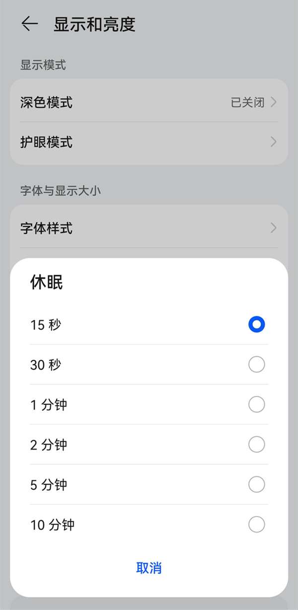 3、选择休眠时间即可。
