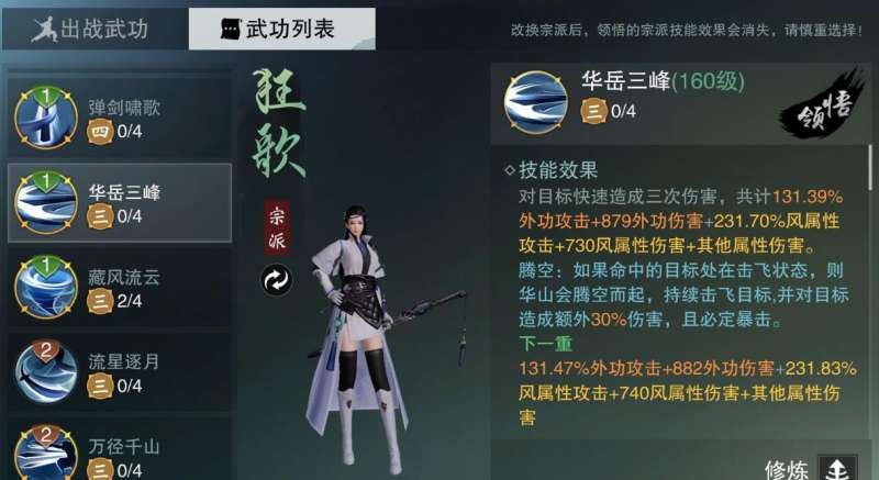 第二个伤害高的职业是华山,其定位是近战输出,拥有较强的辅助能力,在副本里是必须要上场的角色。由于华山技能的特性,他是一个无操作上限的职业,破敌方真气的速度非常快。只要敌方的真气护盾被破除,那么我们打在他身上的就都是真伤了,而且很容易吃到我们施加的控制效果。他的操作难度要求较高,对于操作好的玩家来说,轻轻松松就能在竞技场里打出流畅连招,获得胜利。但是对于操作一般的玩家来说,就会感觉自己根本就打不死人,只能在副本里混混。建议新手玩家先不要选择华山,如果选择就要反复去竞技场里锻炼手法。在加点上推荐玩家携带四劲或者三劲一体,增加华山的生存能力。
