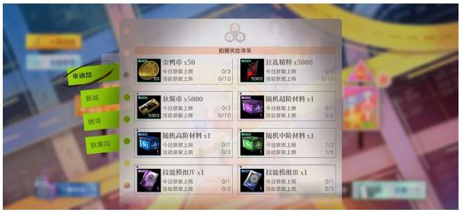 每1.5小时获取一次奖励,一天16次奖励,材料每张图均为50次奖励,但每张图的活动花絮奖励数量不一,导致总奖励次数不一: