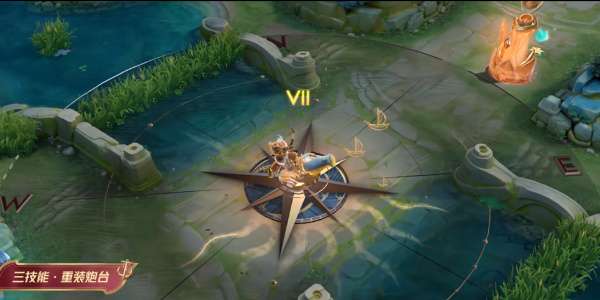3、3技能架起炮台,攻击范围内炮台的下方是持续旋转的罗盘特效,融合了日、月、星、海鸟等元素,还会隐约浮现航海图、光影等元素。