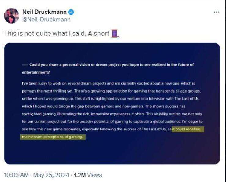 在游戏产业引起轩然大波的一则报道今日迎来了戏剧性的转折。此前,索尼官方媒体发布的一篇文章中引用了《最后生还者2》(The Last of Us Part II)主创尼尔·德拉柯曼(Neil Druckmann)的言论,称其透露顽皮狗(Naughty Dog)工作室的下一款作品将会“重新定义主流游戏的认知”。此言一出,立即在游戏社区引发了热烈讨论和高度期待。