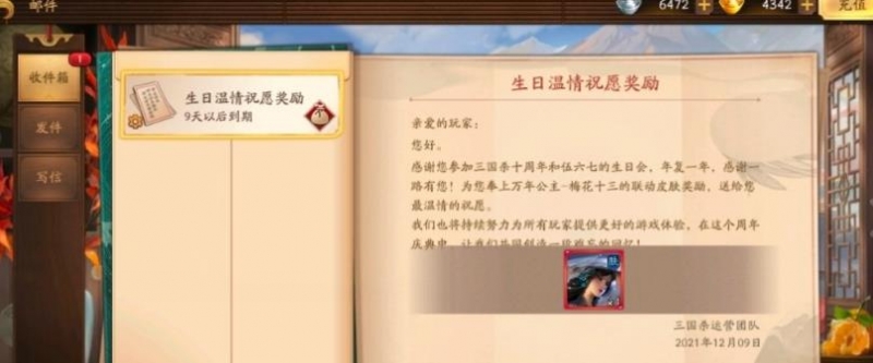 万年公主·梅花十三皮肤在玩家分享活动成功后,就会发送到游戏账号内的邮箱之中。