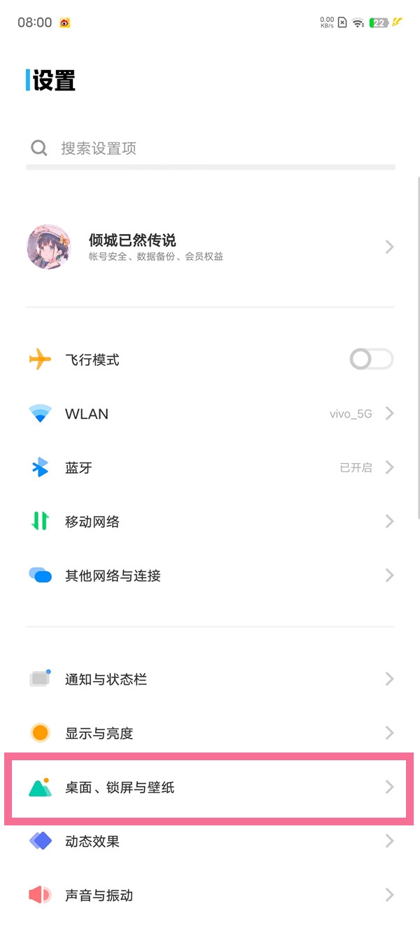 1、从设置菜单中点击桌面、锁屏与壁纸。