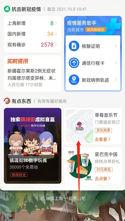 1、打开支付宝,向上滑动,一直滑动到最后。