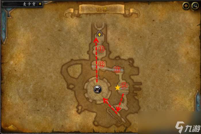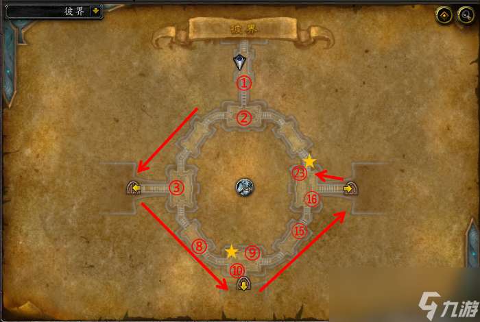 先到达图中所示位置(不会引到怪),然后喝隐身药水前往法力风暴夫妇的场地。