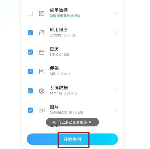 3、在vivo手机上勾选联系人,点击开始换机即可。