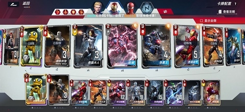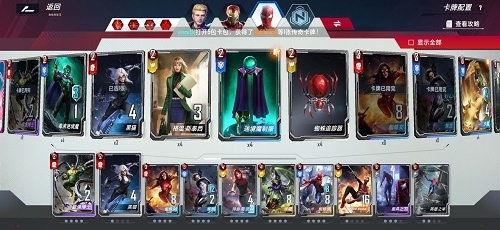 1、在卡牌选择上个人感觉已经是最优携带方案了,美队盾最好带两张,如果一张都没有可以换个恶型怪或者银制长剑(尤其是没有勇度飞剑的),蜘蛛侠、绿魔、面具之下尽量满编,提高卡组上限,章鱼博士,蛛丝蛛女,玛丽简,缩小满编,其他大部分都可以替换成此卡位战力最高的卡。