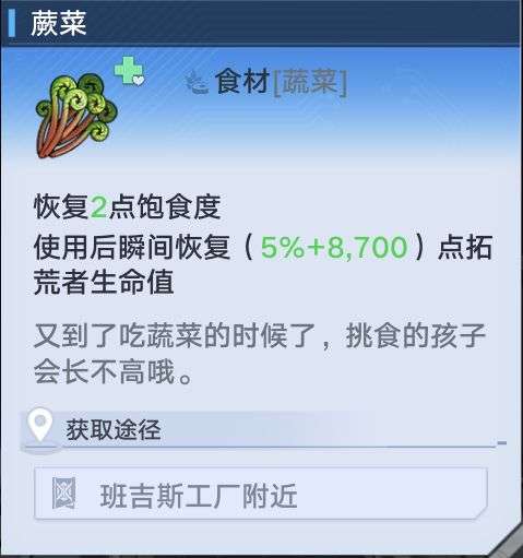 食用后恢复10点饱食度,瞬间恢复玩家16%+29000点生命值。
