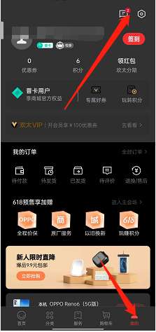 1、打开OPPO商城,选择我的后,点击上方的信息。