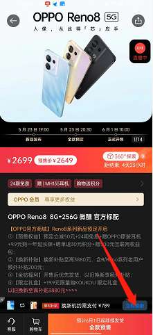 2、选择下方的opporeno8预售界面。