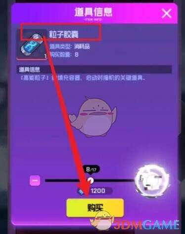 3、在物资专柜商品列表中选择【粒子胶囊】并完成购买即可获得