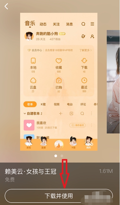 6、我以其它任意一款皮肤为例,点击皮肤后,我们点击底部中间的【下载并使用】