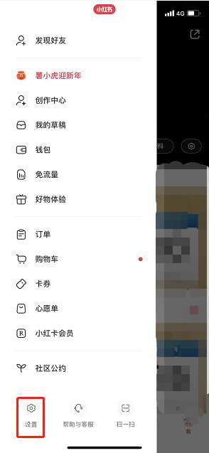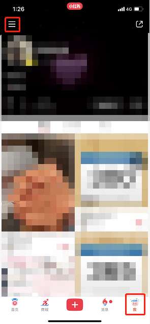 1、开启小红书app,在我版块中点击左上角三条线的图标。