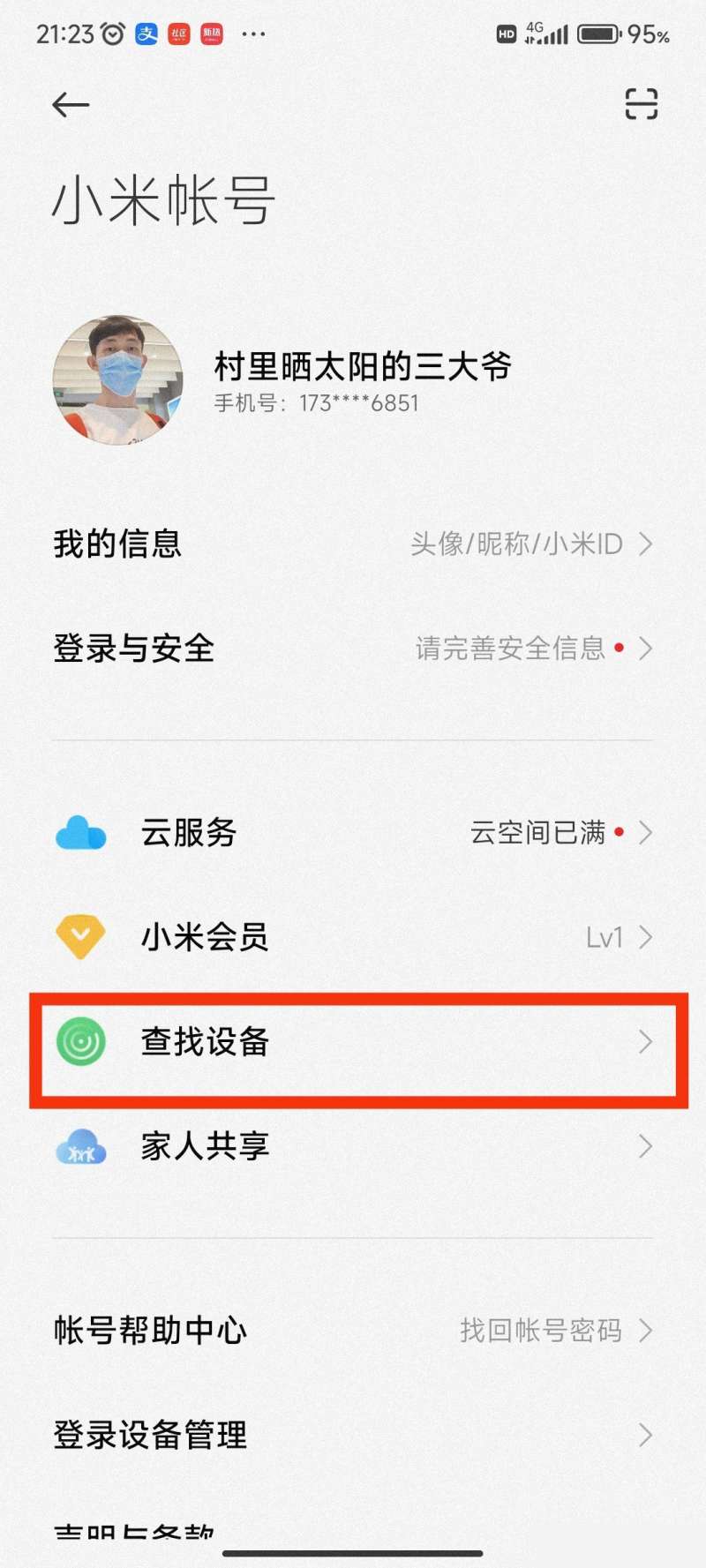 1、打开设置,登录并进入小米帐号。
