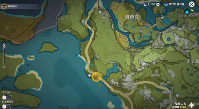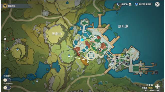 3、传送璃月港上方锚点,往地图的西南方向飞。