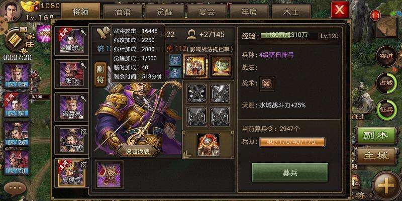 在《攻城掠地》中,真夏侯惇是玩家们非常渴望拥有的一位强力将领。他不仅拥有出色的战斗属性和能力,还能在战场上发挥出巨大的作用,帮助玩家在游戏的《攻城掠地》中取得胜利。但是,很多玩家却不清楚如何招募到这位名将。本文将为大家详细介绍在《攻城掠地》中如何招募真夏侯惇,并提供一些有用的建议和攻略。