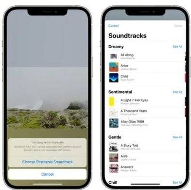 本次更新还新增了用于在照片中使用共享回忆功能的界面,如果因版权等原因无法共享 Apple Music 歌曲,则可以重新选择选择适合共享的歌曲。