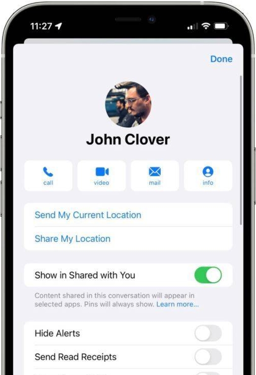 在 iMessage 等消息应用中,用户可以点击联系人姓名并选择是否与他们分享自己的状态。