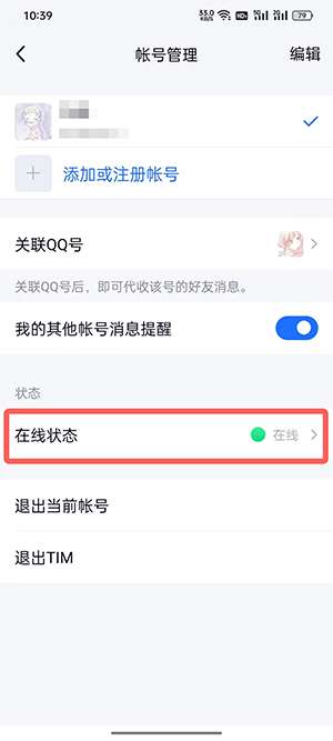 3、在下方打开【在线状态】设置,选择修改自己的在线状态;