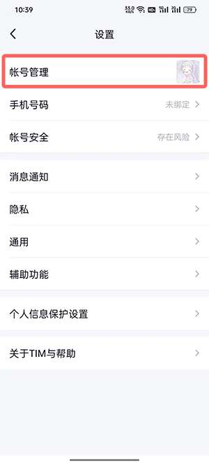 1、打开手机上的TIM应用,登录需要设置在线状态的账号,找到【我的】页面选择【设置】;