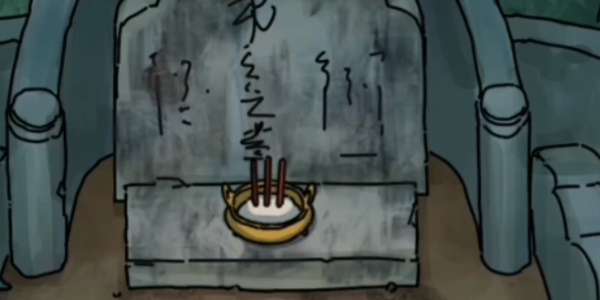 4、规则提醒我们躲进棺材里但是要尊敬原住民,我们需要左划香炉扶正,拿树叶扫一下墓碑,棺材打开后点击棺材两下进入棺材。