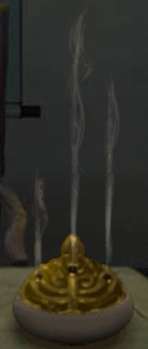 46.右转,右转,把龙涎香粉末倒入香炉,香正常燃烧了,盖上香炉盖,从左往右观察3条烟雾的长度,根据发现的长度顺序开箱子,得【兰花图碎片4】。点空白画卷,装上4块兰花图碎片,暗格开,得【钥匙】