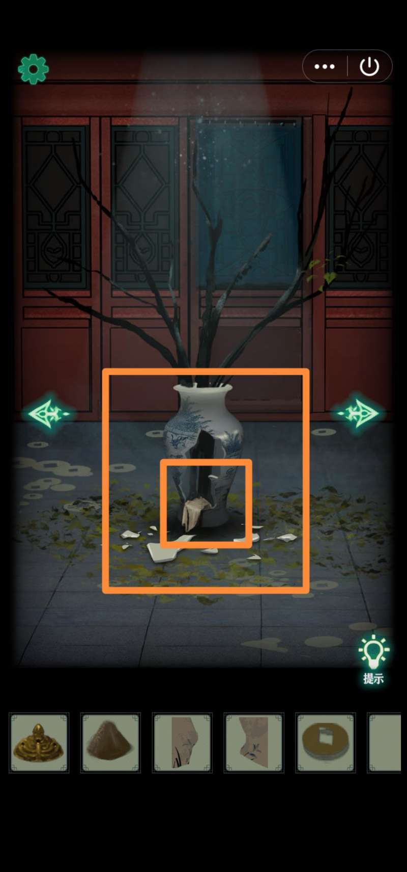 45.右转,用铁锤打破地上花瓶,得【兰花图碎片3】