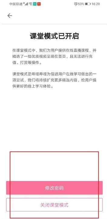 3、成功开启哔哩哔哩课堂模式后,可以重新修改密码。