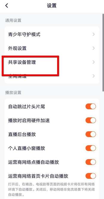 第三步:点击共享设备管理,