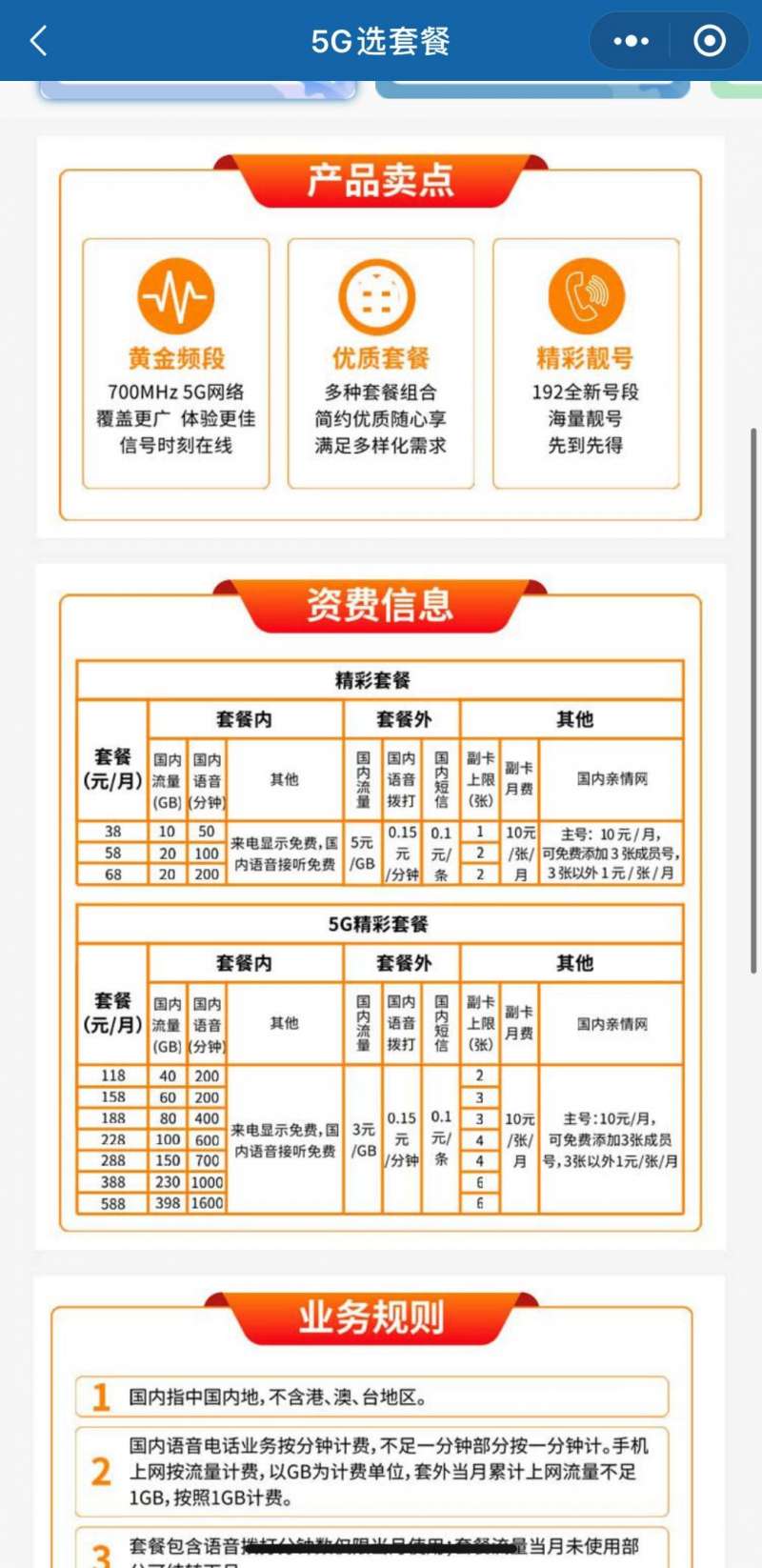 | 网上营业厅入口 | 选号办理流程 | 套餐资费详情 |