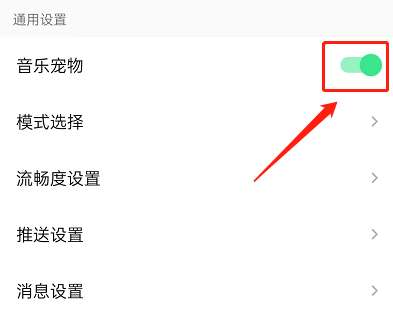 3、下滑到通用设置,将音乐宠物右侧开关关闭。