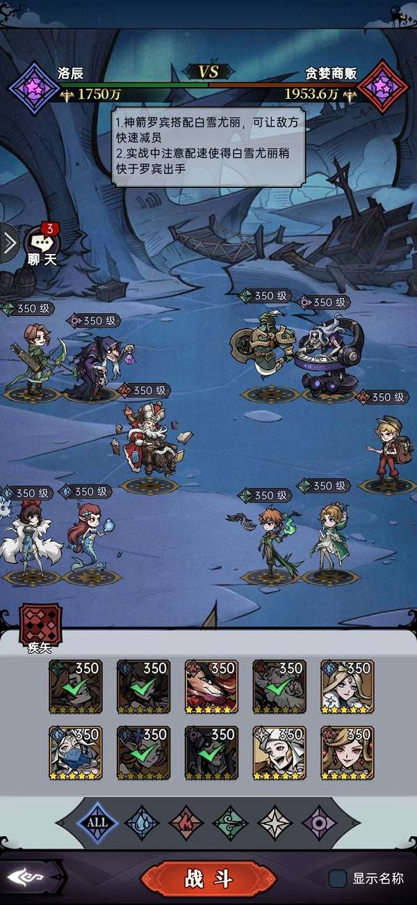 3.魔镜物语狩猎时刻第四章4-3角色阵容及站位如下: