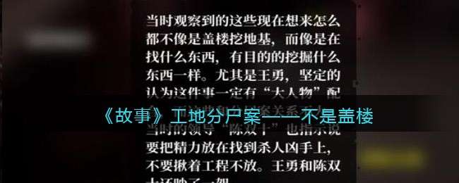 《孙美琪疑案:故事》DLC已经上线,本案包含了多个小故事,其中第一个故事工地分尸案线索——不是盖楼在哪里找呢?今天小编就给大家带来了《孙美琪疑案:故事》工地分尸案线索不是盖楼获取位置攻略,一起看看吧!