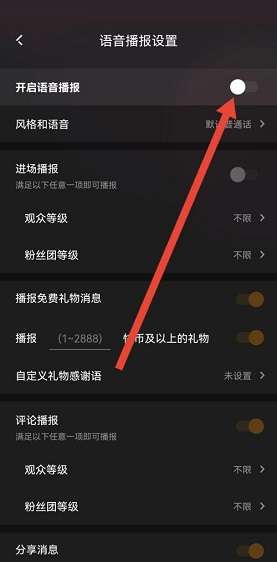 4、最后进入语音播报设置,然后把【开启语音播报】的按钮关闭即可,如图所示。