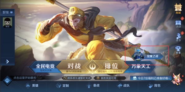 王者荣耀2021年的觉醒之战今日已经正式开启了,想必很多玩家都已经迫不及待的,想要再一次体验这个玩法了,之前上线的时候就还没有玩够,这一次终于等到他回归。那么活动是已经开启了,那么也得先找到入口才行啊,到底在哪里呢?往下看就能找到的。
