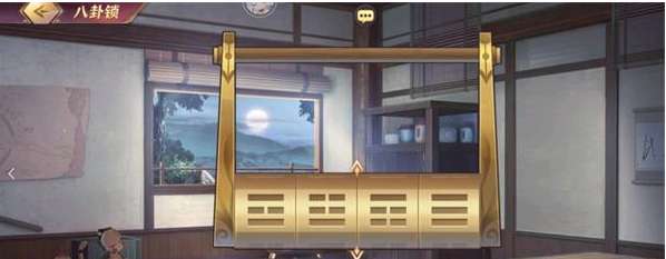 2.进入房间,拨动镜子到图中位置,可以在墙上看到密码顺序(图中文姬助手胖,比较小)顺序为上,左下,左,右下,分别对应八卦图中离火,艮土,震木,乾金。按照对应图案输入即可。