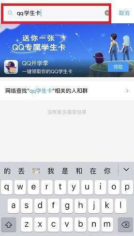 1、我们打开QQ,在搜索框里输入“QQ学生卡”,出来QQ开学季,点击“领取”。