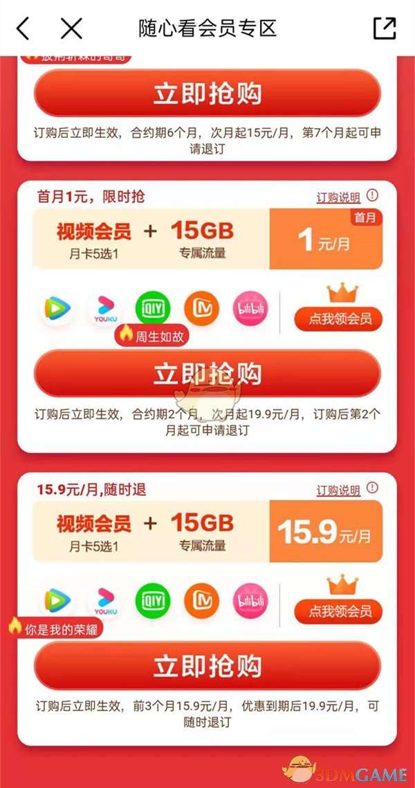 2、选择自己需要的随心看会员服务后,点击立即抢购并付款即可。