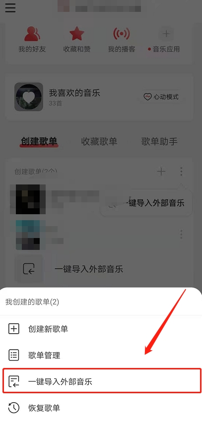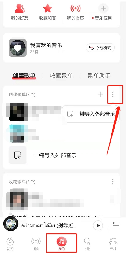 3、之后打开你想导入的音乐播放器,在我的页面点击歌单右侧三点按钮(小编这里以网易云音乐为样式,其他平台方法也是一样的)