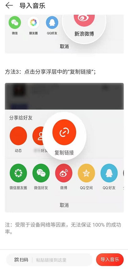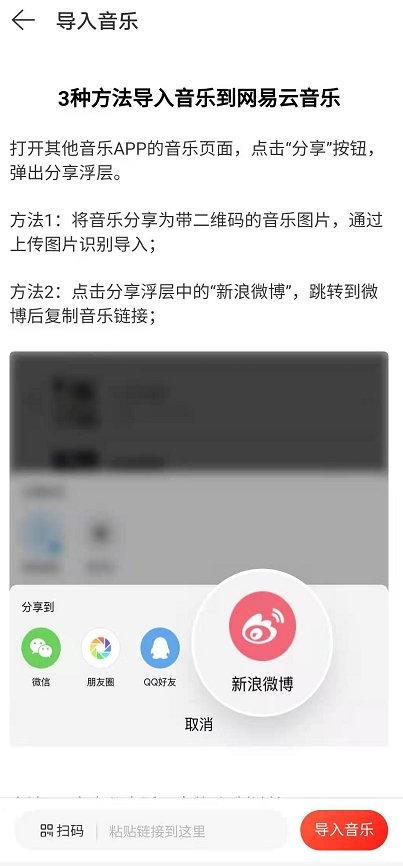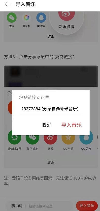 5、进入页面后,用户们可以看到详细的导入方法分享,然后将复制好的链接填入横线中,导入歌单就完成啦,如下图所示。