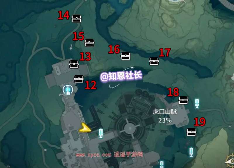 虎口山脉地区的宝箱位置如下图所示,玩家们可以对照着点位和编号前往收集。