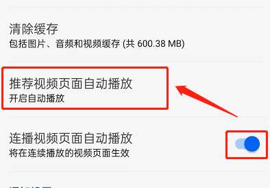 2、先将连播视频页面自动播放功能关闭,再点击进入推荐视频页面自动播放。