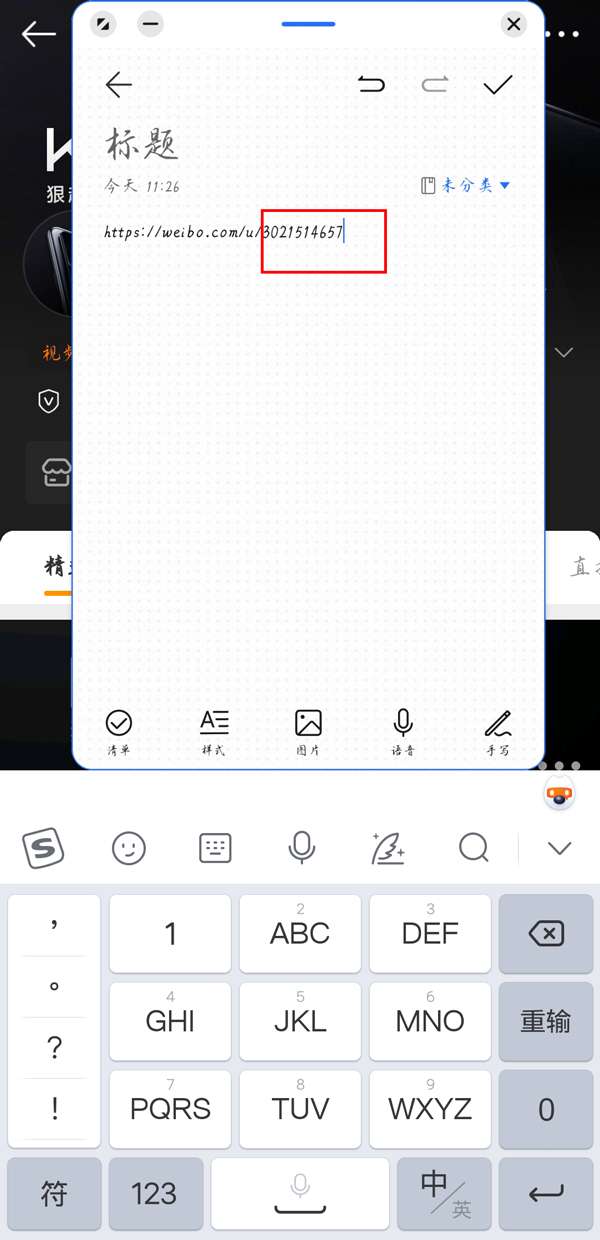 3、在任意文本编辑出粘贴链接后,你就可以查看他人UID。