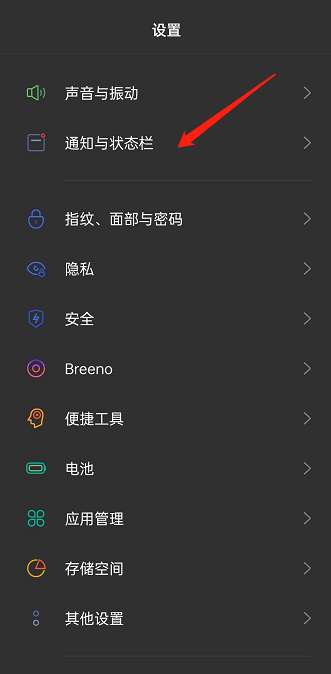1、打开设置,选择如图的【通知与状态栏】。