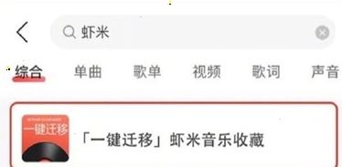 2、打开网易云音乐app,搜索虾米,就能在综合栏目看到一键迁移虾米音乐收藏选项