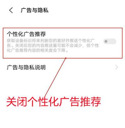 5、把个性化广告推荐旁边的按钮关闭就可以了。