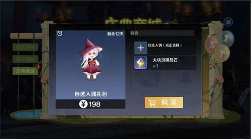 解锁人偶自选礼包可获得自选UR人偶1+大块灵魂晶石*1,人偶自选礼包仅可购买1次哦。